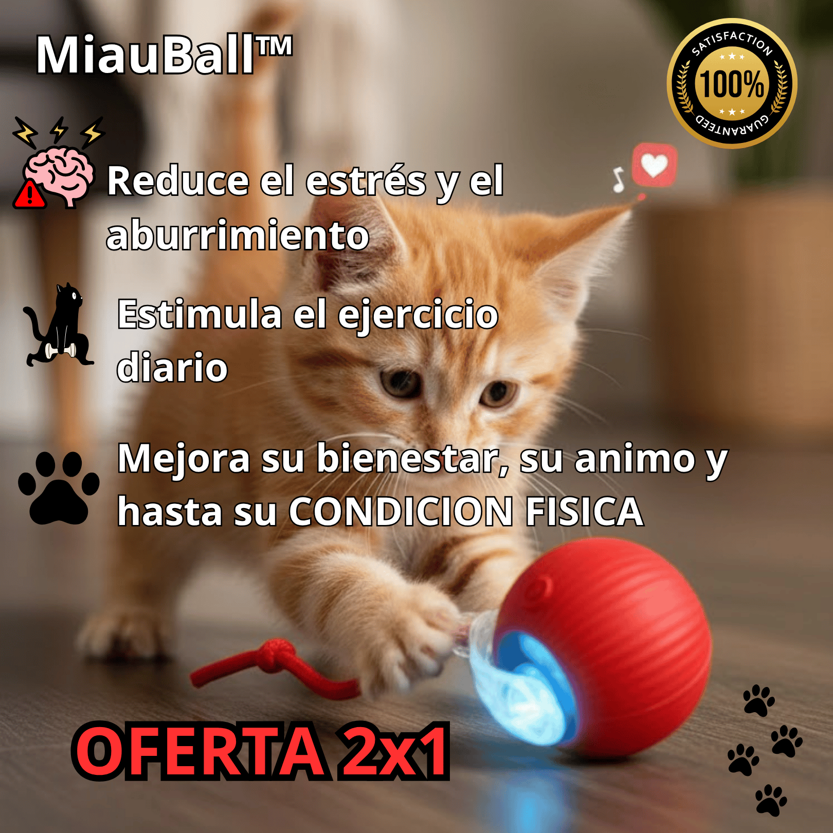 Nuestra pelota MiauBall™ mantendra activo y feliz a tu gato. Este juguete no solo despierta los instintos naturales de caza de tu gato, sino que también mejora su bienestar, su ánimo y hasta su condición física. Evitando que te haga daños o que este durmiendo por muchas horas